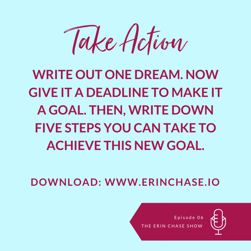 Think about the different goals and dreams you have for your life, and why you haven't done anything with them. Flip it into a positive that you CAN make it happen. Stop that inner monologue that's telling you it will just never happen.